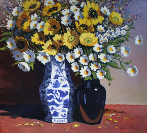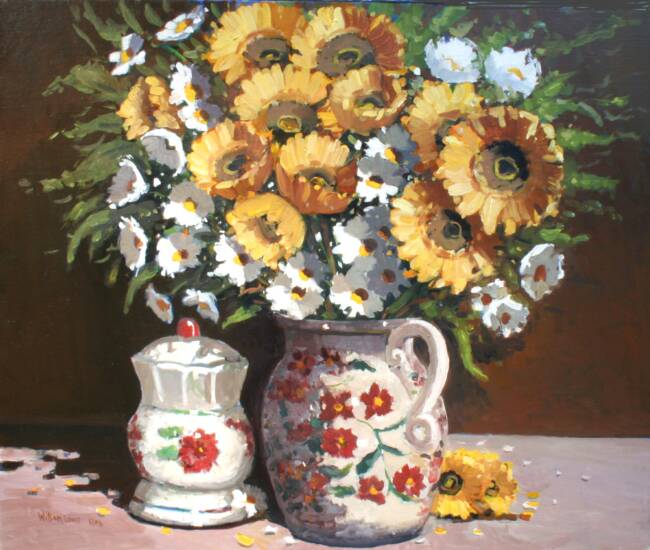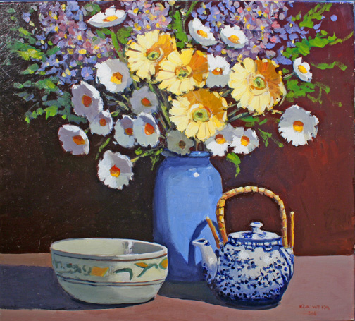 Flowers with teapot 20 x 18 inches sold
